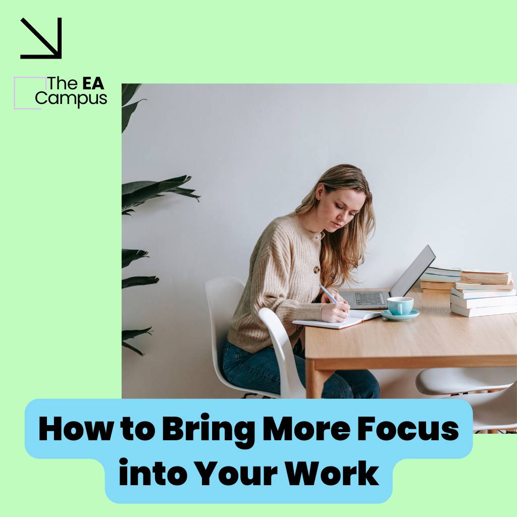 With the right strategies, you can improve your focus and productivity – even in the busiest environments. Here are some tips to help you bring more focus to your work. Understanding how to bring more focus to your work is essential for maintaining productivity as an Executive Assistant.