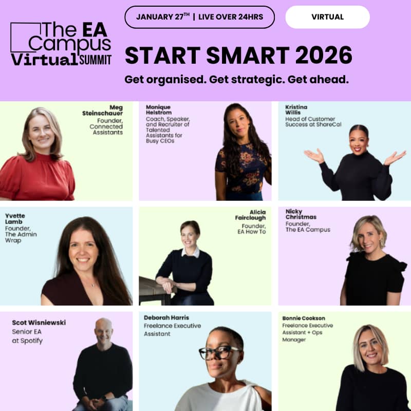 Join us for a one-day online event where leading Executive Assistants and productivity experts share how to design smarter workflows, harness AI with confidence, and set up your 2026 for clarity and control. This Summit is your space to pause, reset, and design a way of working that’s smarter, calmer, and built for what’s next.