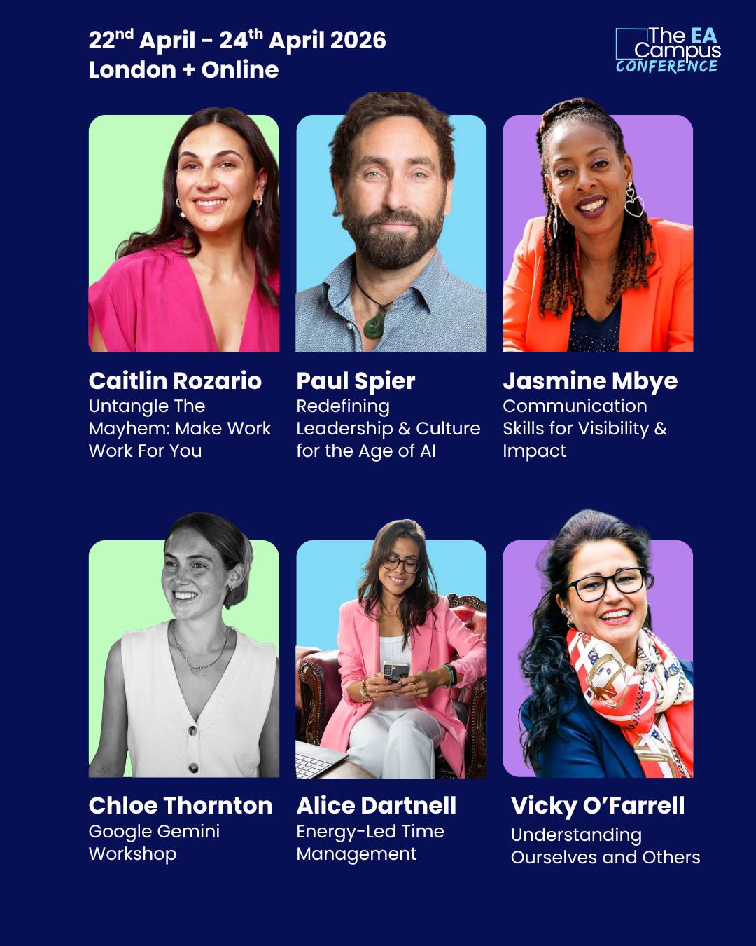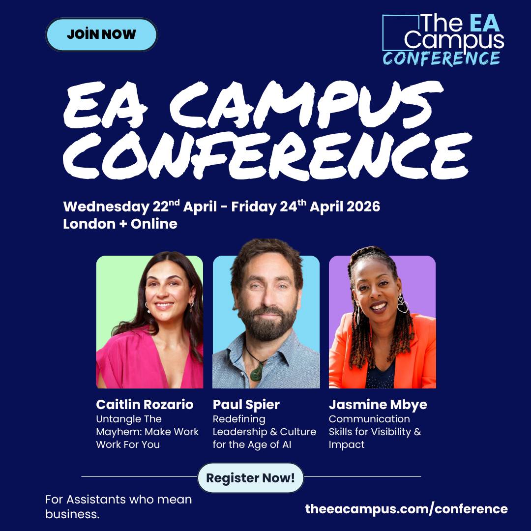 The EA Campus Conference is back! This is world-class learning built exclusively for Executive Assistants, designed to celebrate the profession, elevate your skills, and equip you for the challenges shaping the modern workplace. Whether you join us in London or tune in online, you’ll leave with new skills, renewed confidence, and a network that lasts long after the event ends.