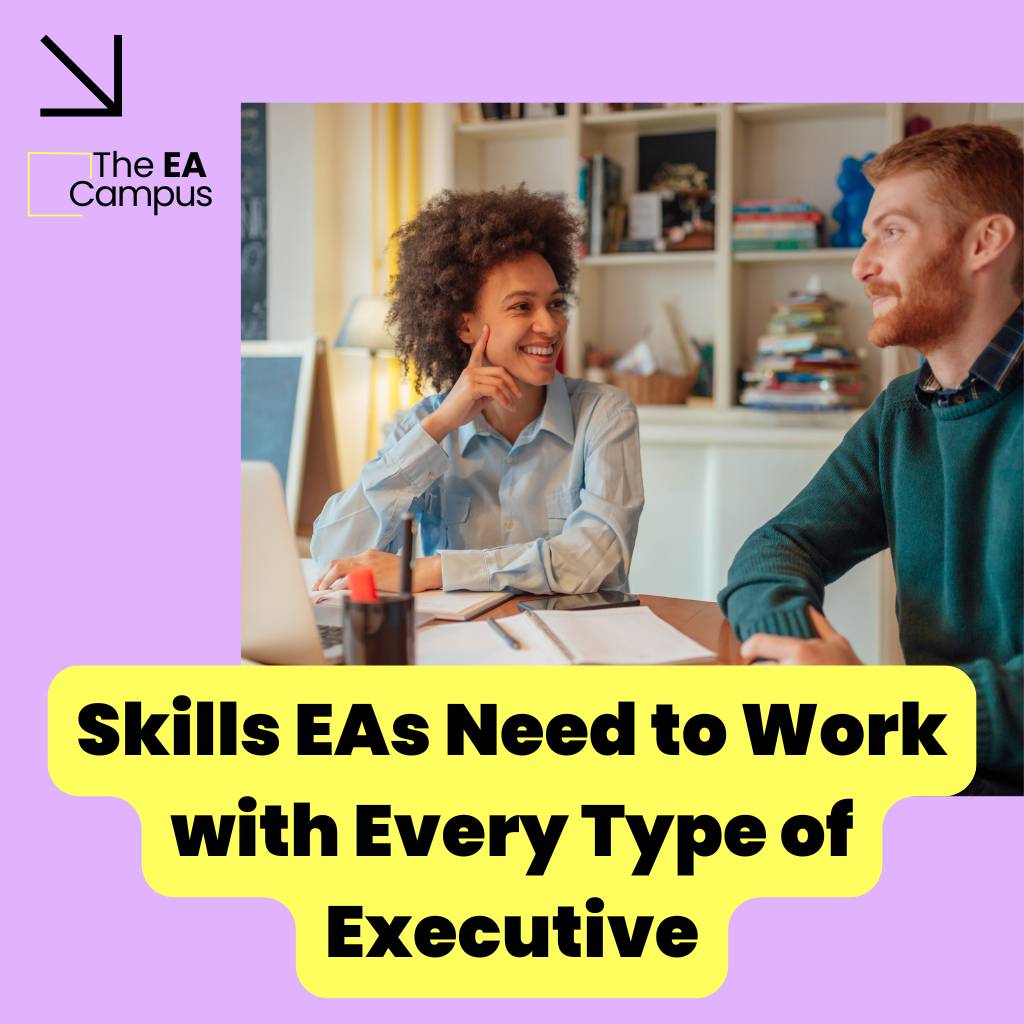 Every Executive has their own style, pace, and priorities. Some thrive on big-picture thinking, while others prefer the details to be locked down. Some lead with vision, others with process. And as EAs, we learn quickly that one approach doesn’t fit all when it comes to the skills EAs need to work with every type of Executive.